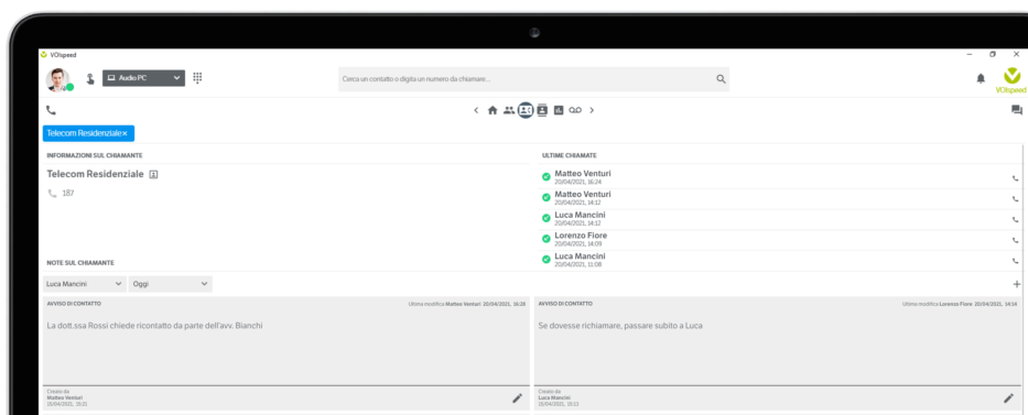Associa note ai contatti inseriti in rubrica: le informazioni inserite saranno disponibili a tutti i tuoi colleghi ed automaticamente consultabili a chiamata in ingresso o uscita, comunicando verso l’interlocutore in maniera più efficace.