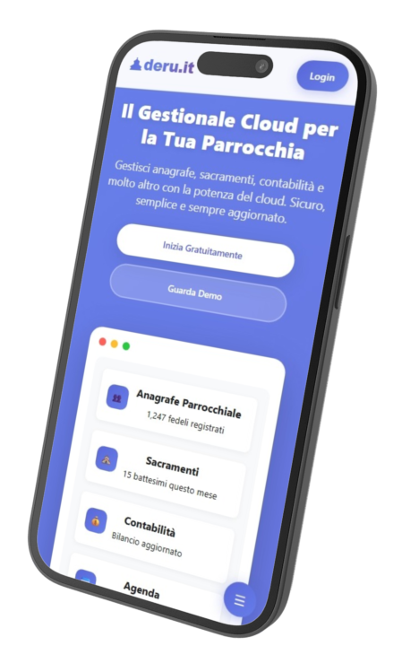 deru.it è una suite completa di strumenti progettati specificatamente per le esigenze pastorali moderne. Tutto in Cloud.