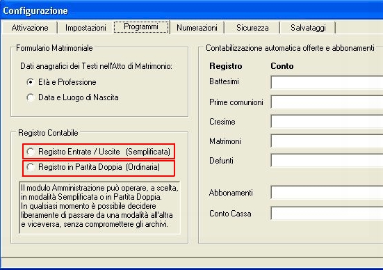 E' senz'altro il programma ideale per una semplice ed efficace organizzazione contabile della parrocchia, in grado di offrire costantemente il quadro amministrativo di cassa, banca, posta, ecc. in rapporto alle entrate ed alle uscite (acquisti, offerte, spese, ecc.). Il programma può operare sia in modalità semplificata che in partita doppia, con possibilità di passaggio da una modalità all'altra in qualsiasi momento. La gestione visuale del piano dei conti permette di organizzare rapidamente le voci di bilancio, in modo da essere sempre conformi alle voci indicate dalla propria curia. La stampa dei saldi contabili e dei movimenti nei vari registri è visualizzabile in anteprima. Le informazioni possono essere esportate in Excel con la tecnica del copia - incolla.