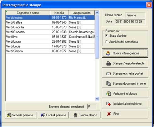E' il programma per le parrocchie nelle quali si svolge una intensa attività catechistica, utilissimo nell'organizzazione delle classi. I dati anagrafici dei ragazzi possono essere inseriti direttamente nella classe, oppure essere richiamati dallo Stato d'Anime.