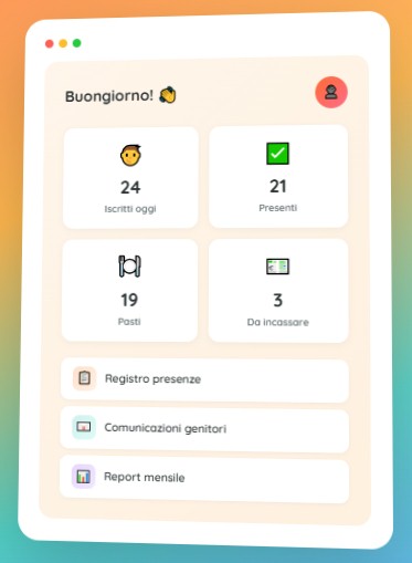 Presenze, pasti, pannolini, diario giornaliero e comunicazioni con i genitori